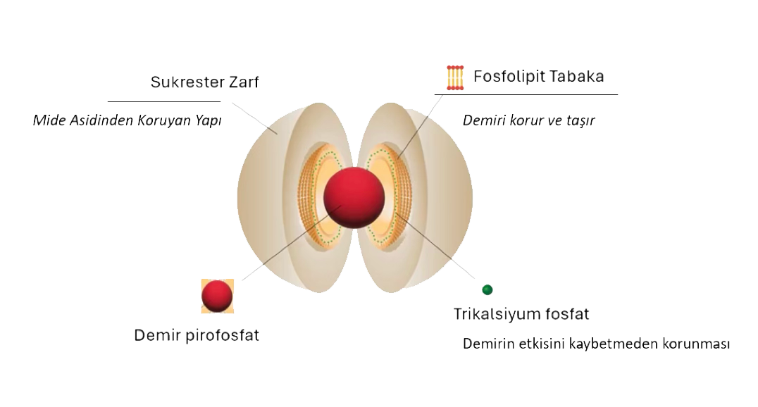 Sukrozomiyal® Demir, karaciğerden direkt emilen, böylelikle intravenöz demire eşdeğer etki gösterirken standart demirlerin sahip olduğu yan etkilerin hiçbirini içermeyen özel patentli bir teknolojidir.