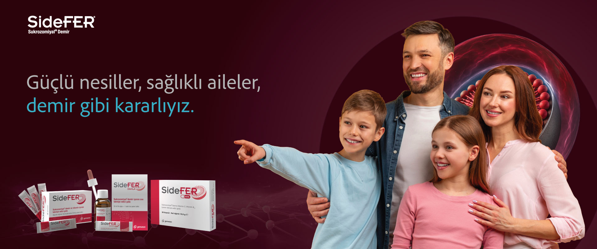 SideFER®, demir eksikliği riski taşıyan veya demir eksikliği anemisi teşhisi konmuş herkes için uygundur. Özellikle gebeler, emziren anneler, çocuklar, ergenler, doğurganlık çağındaki kadınlar, sporcular ve yaşlılar SideFER®’i güvenle kullanabilirler. Doktorunuzun önerisiyle, demir ihtiyacınızı karşılamak ve enerjinizi artırmak için SideFER®’i tercih edebilirsiniz.